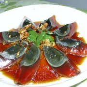 皮蛋、蒜头油、香菜、生抽、盐、味精、白醋。