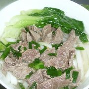 牛肉、牛肉丸、粿条、油炸蒜子、葱、上海青、调和油、盐。