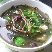 茶树菇、海带丝、瘦肉、香菜、盐。