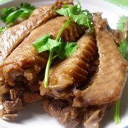 鸭翅、潮汕老卤、姜、蒜头、芫荽头、盐、酱油、冰糖。