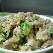 油菜、榨菜、瘦肉、剩饭、酱油、调和油。
