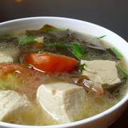 冻豆腐、番茄、姜蒜葱、海带、浓汤宝。