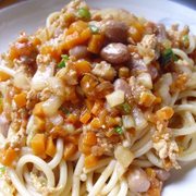 意大利面、番茄、胡萝卜、大白菜、鸡脯肉末、熟花生仁、葱花、欣和葱伴侣豆瓣酱、盐、酱油、调和油。
