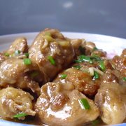 鸡肉块、姜丝、葱花、水淀粉、干淀粉、盐、酱油、调和油。