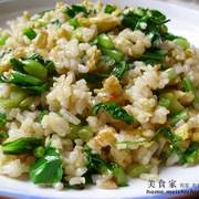 芥蓝、鸡蛋、剩饭、盐、酱油。