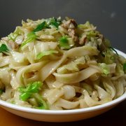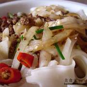包菜、猪肉、河粉、葱、调和油、盐、酱油。
