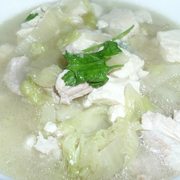 白菜、冻豆腐、瘦肉、蒜头、香菜、盐、味精、调和油。