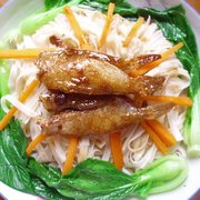 鸡蛋拉面、干剥皮鱼、上海青、胡萝卜、豆瓣酱、酱油、调和油。
