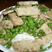 豆角、肉饼、面条、欣和葱伴侣豆瓣酱、酱油、盐、调和油。