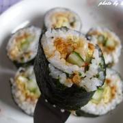 大米、鸡蛋、青瓜、寿司紫菜、肉松、辣白菜、白醋、白糖、盐。