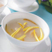 加拿大象拔蚌、煽鸡、香米、咸菜、花生、菊花瓣。