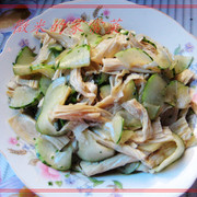 干腐竹、菜瓜、香葱、盐、醋、蚝油、生抽、油、麻油、白糖。