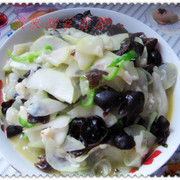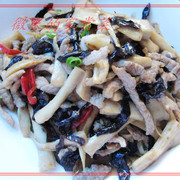杏鲍菇、木耳、肉丝、青红椒、姜蒜。