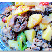 整鸡、土豆、红椒、青椒、洋葱、姜、蒜、盐、老油、生抽、胡椒粉、冰糖、花椒、料酒、淀粉。