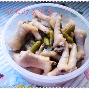 鸡爪、香糟卤、泡椒、盐、白醋、花椒、大蒜、八角、桂皮、料酒、姜、水。