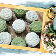 冰皮月饼预调粉、白油、水果馅、牛奶、月饼模具、抹茶粉。
