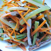 芹菜、香干、胡萝卜、盐、糖、香醋、麻油、芝麻。