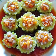 卷心菜丝、芹菜叶、面粉、青豆、玉米、火腿丝、盐。