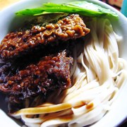 豇豆、肉丝、面、食用油、盐、老抽、生抽、蔬菜精。