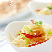 莲藕、香菜、干红辣椒丝、姜、花椒、盐、糖、醋、生抽。