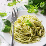 意大利面、新鲜罗勒、帕玛森干酪、蒜香橄榄油、大蒜、松仁、柠檬、盐、黑胡椒。
