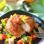 牛肉馅、猪肉馅、洋葱、面包屑、蒜、牛奶、马苏里拉奶酪、小柿子、柠檬、沙拉菜、黄椒、干面包块、鸡蛋清、盐、黑胡椒。