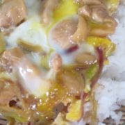 白饭、鸡腿、鸡蛋、小红葱、蒜、白酱油、红酒、蚝油。