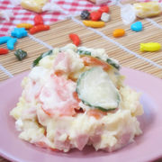 土豆、水煮蛋、青瓜、红萝卜、火腿片、幼盐、美乃滋。