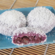 糯米粉、粘米粉、澄粉、鲜牛奶、浓椰浆、紫薯馅、细砂糖、沙拉油。