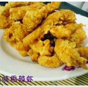 虾仁、沙拉酱、白胡椒粉、料酒、鸡精、麻辣香酥炸粉、白面、鸡蛋黄、淀粉、油。