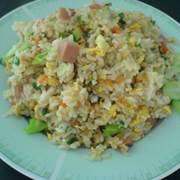 米饭、黄瓜、火腿肠、胡萝卜、卷心菜、鸡蛋、小葱。
