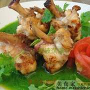鸡皮、鸡翅根、香菇根、白葡萄酒、胡椒粉、面粉、蒜、橄榄油、香菜、盐、黄油。