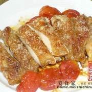 小番茄、鸡腿、料酒、盐、黑胡椒。