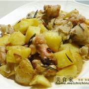 鸡翅、土豆、蒜片、干辣椒丝、盐、黑胡椒、橄榄油、白兰地、迷迭香。