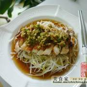 绿豆芽、鸡腿肉、葱花、姜末、黑胡椒、生抽。