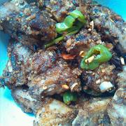 排骨、淀粉、料酒、姜、老抽、盐、胡椒、辣椒、葱。