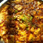 豆腐、五花肉末、胡椒粉、自制花椒粉、葱、水淀粉、豆瓣酱、盐水、盐、料酒。