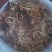 火腿、面条、黑木耳、油辣椒、大蒜、醋、酱油。