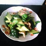 黄瓜、尖椒、猪肉、葱、姜、油、水淀粉、生抽、料酒、盐、味精。