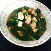 小白菜、冻豆腐、葱、油、生抽、盐、味精。