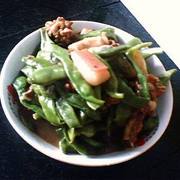 豆角、肉、葱、姜、油、料酒、酱油、盐、味精。