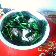 猪肉、小白菜、胡椒粉、鸡粉、姜末、盐、糖、味精、淀粉。