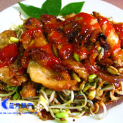 鸡腿、洋葱、蒜、盐、酱油、白糖、白醋、番茄沙司。