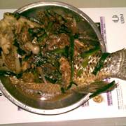 福寿鱼、姜、蒜、葱、热油、酱油、蚝油、盐。