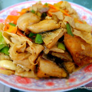 咸鱼、干腐皮、胡萝卜、青椒、大葱、姜、蒜、米醋、米酒、鸡精、油、生抽。