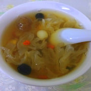 银耳、莲子、桂圆、百合、枸杞、黑加仑葡萄干、糖。