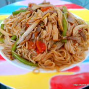 意面、猪肉、鸡蛋、胡萝卜、香菇、洋葱、姜、蒜、指天椒、番茄。