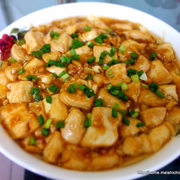 豆腐、葱、姜、蒜、蚝油、生抽、老抽、料酒、米醋、辣椒油、盐、鸡精、冰糖、水淀粉。