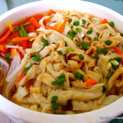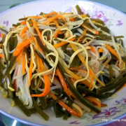 海带丝、豆芽、胡萝卜、千张、姜、盐、鸡精。