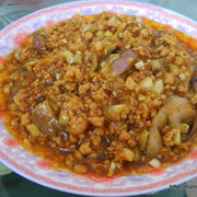 肉末、茄子、姜蒜、辣椒油、蚝油、生抽、米醋、冰糖、鸡精、盐、水淀粉。
